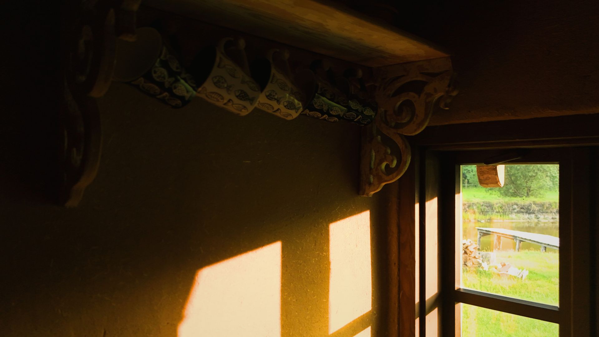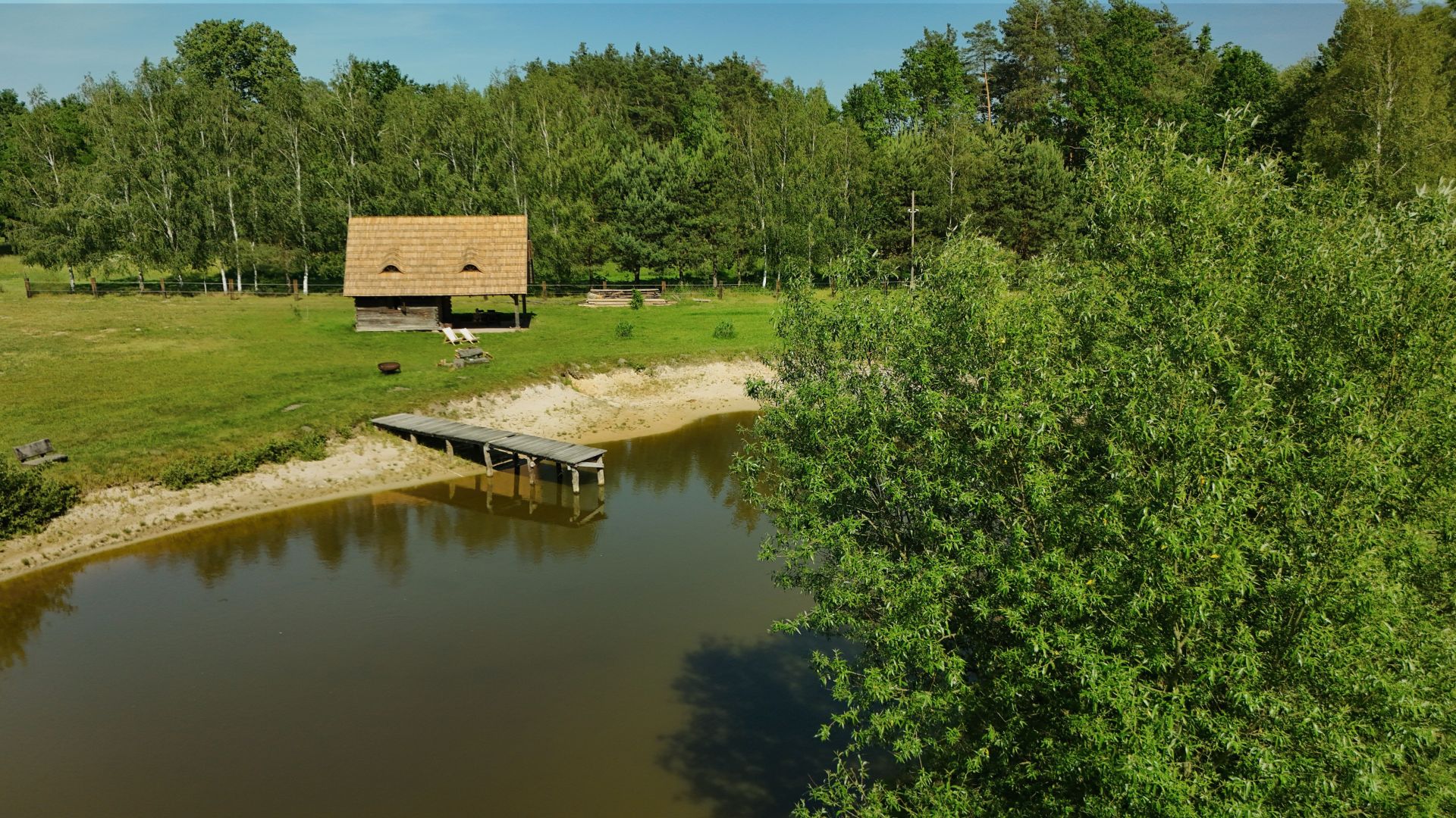 Rybakówka znajduje się około 500 m od dworku, dojazd polną drogą pomiędzy naszymi pastwiskami.