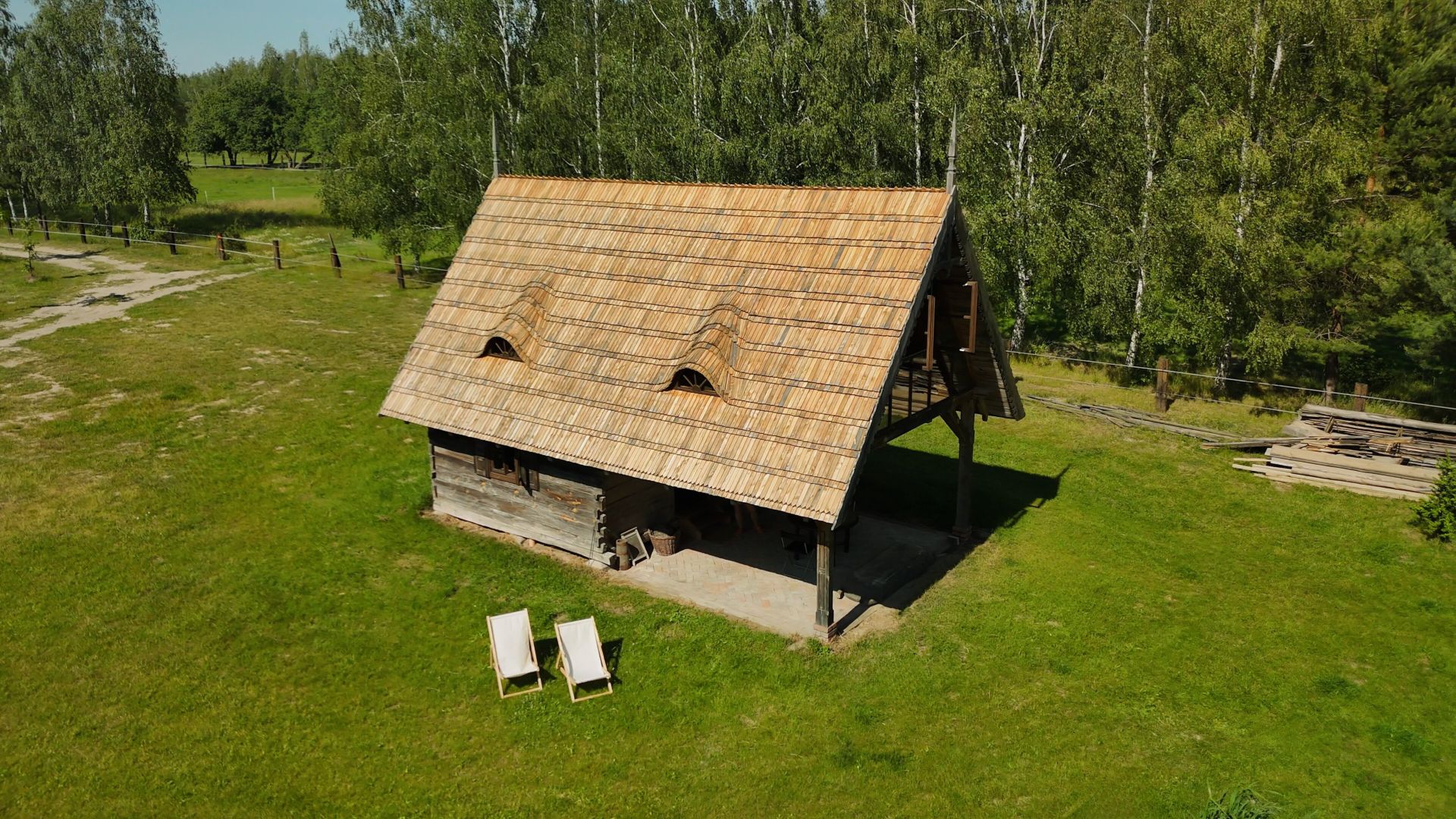 Naturalne są tutaj zarówno materiały z jakich korzystaliśmy przy budowie – drewno, glina, cegła, jak i otoczenie – piękny widok na las, sąsiedztwo stawu, pastwiska.